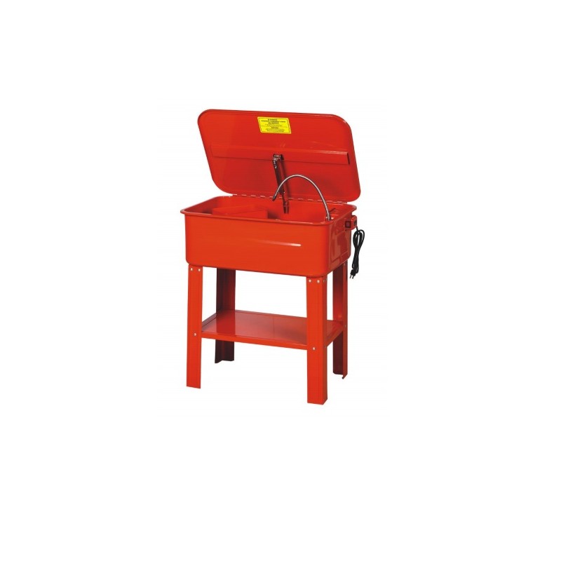 The workshop washer for a part of 80 liters operates in a closed circuit by collecting liquid from the bottom. It is equipped with a pump to which a flexible steel hose is connected, which does not deform after it has been set. The hose outlet is directed to the area of the cleaned object, we close the lid and wait for the result. The washer has a shelf on which you can place a container for used cleaning liquids.