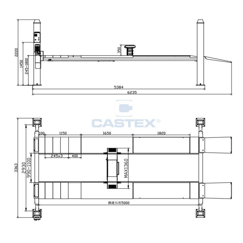 Automatic two-column lifter combined with a top with a lifting capacity of 4000kg.