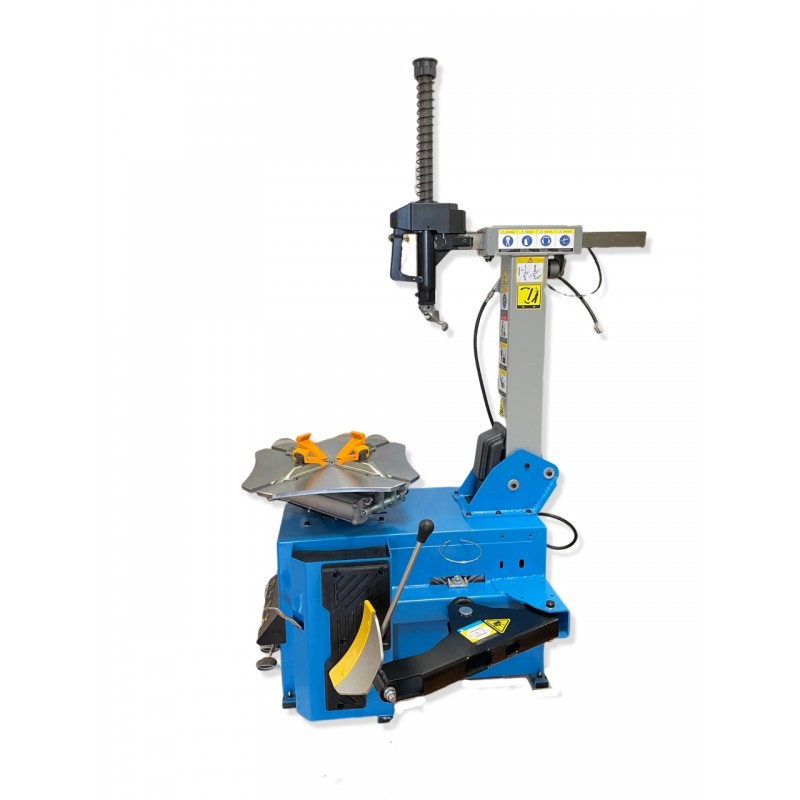 The CASC-505 tire changer is designed for mounting and dismounting tires from passenger cars, vans and motorcycles. In the case of the latter, it is enough to purchase additional equipment in the form of a suitable adapter in order to easily remove the motorcycle tire from the rim. Additional reinforcements and a hexagonal guide pin guarantee safe operation in conditions requiring higher strength. The presented model of the brazier is characterized by a pneumatically controlled and blockable tilting main arm, enabling quick and safe replacement of tires.