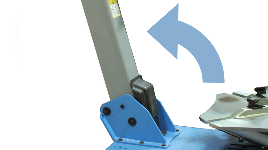 You can equip the machine with an auxiliary arm to support the tire pressure during disassembly and assembly of tires for both standard, low profile and runflat tires (see the auxiliary arm).