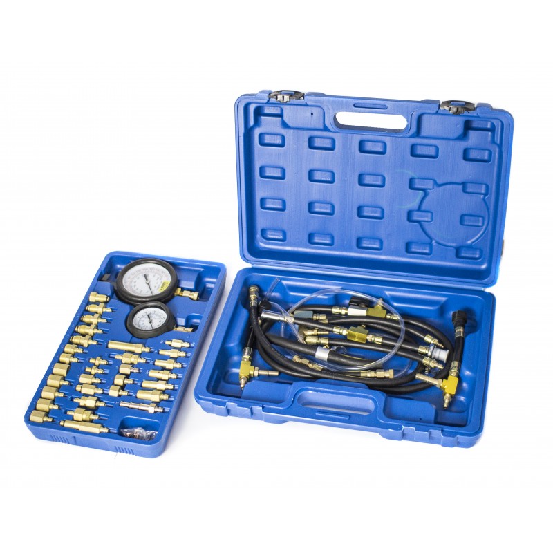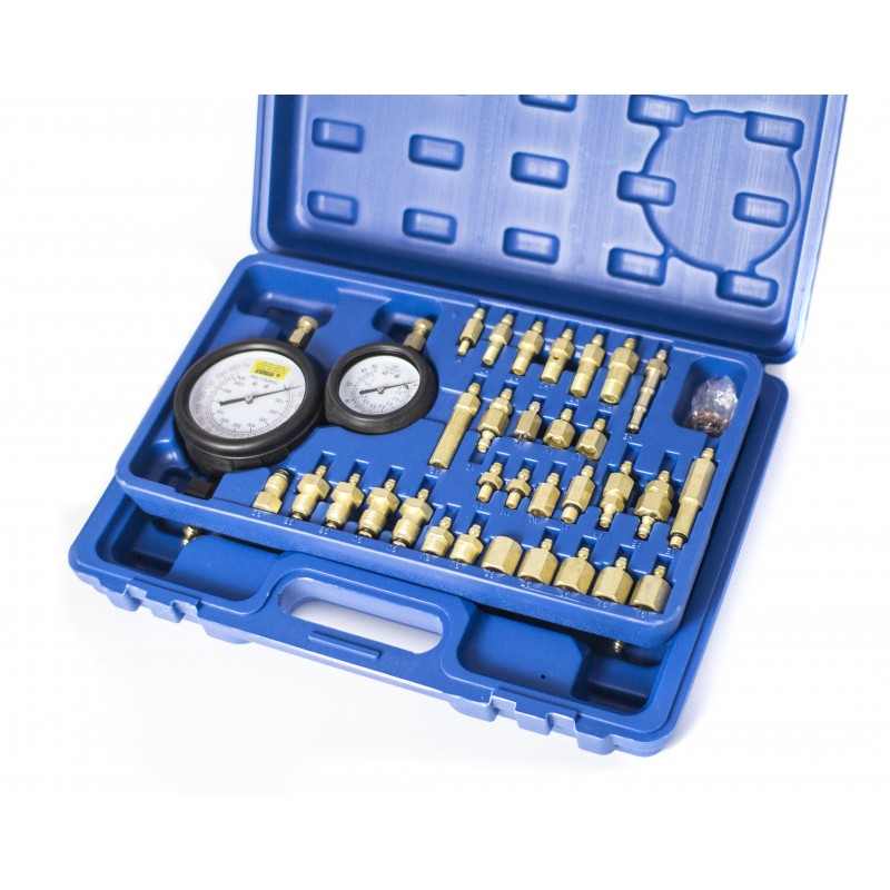 Niski wskaźnik ciśnienia z 0-15psi lub 0-100kpa W wygodnej walizce znajduje się również komplet adapterów i przewodów. Adaptery posiadają szybkozłączki do łatwego połączenia.